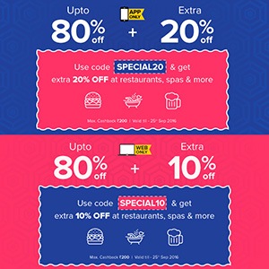 - Upto 80% OFF + Extra 20% OFF along nearbuy